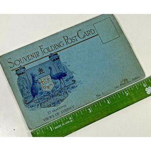 Vtg Fold Out Postcard Sydney Australia 22 Picture Print Unposted Blue Gold 1900s