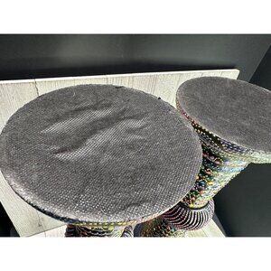 Add a touch of vintage charm to your home with this hand-painted set of two folk art wood candle holders. Featuring vibrant rainbow colors, these 16.5" tall pieces are perfect for brightening any space.
