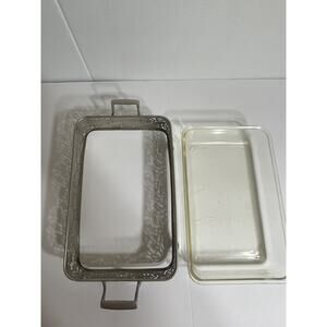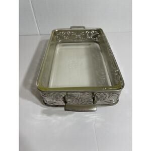 Vtg Footed Rectangular Serving Tray With Pyrex Serving Dish