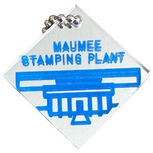 Vtg Ford Keychain Mirrored Clear Maumee Stamping Plant Keychain Ball Chain Logo