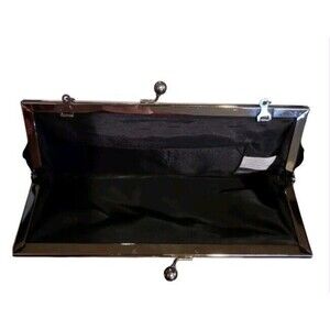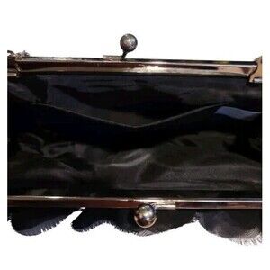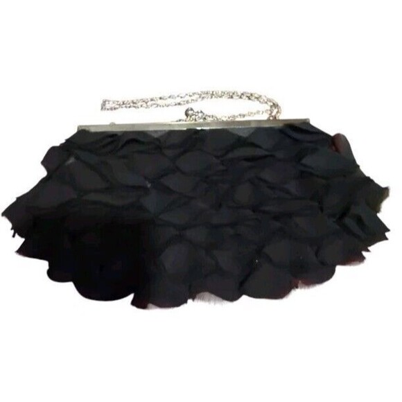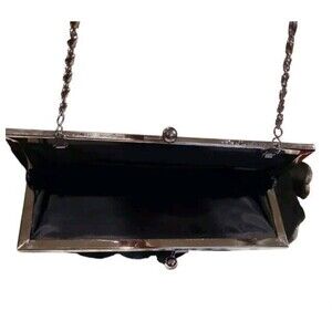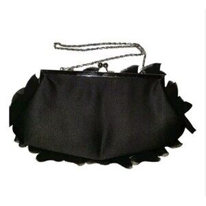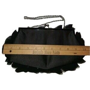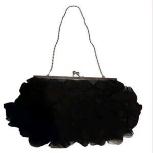 Vtg. Formal Purse Handbag In Satiny Black Tulle Silver Chain Strap Kiss Lock