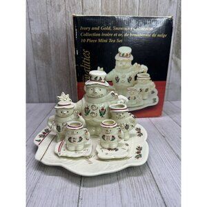 Vtg Formalities 10 Piece Mini Tea Set Snowman Christmas Decorative Baum Brothers