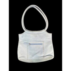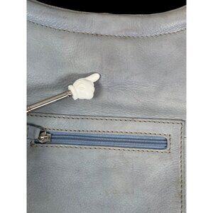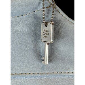 Vtg. Fossil Classic Light Blue Leather Tote Shoulder Bag With Dual Handles & Zip Pocket. This Fossil features a convenient zip pocket for secure storage and dual handles for easy carrying. It also has its vintage signature key hang tag.