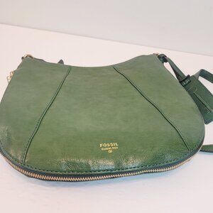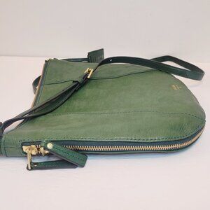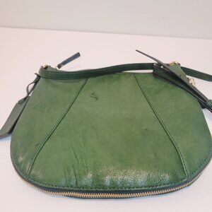 Vtg Fossil Emerald Green Leather Shoulder Hobo Purse Bag Zip Expand READ
