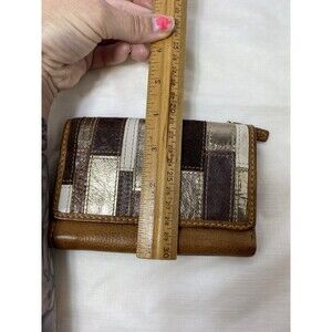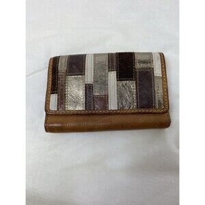Vtg Fossil Genuine Leather Wallet Brown & Multi-Color Patchwork Tri-fold So Soft
