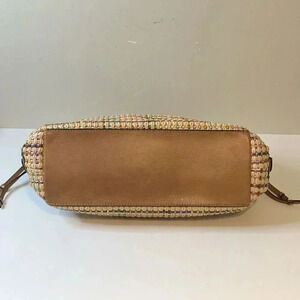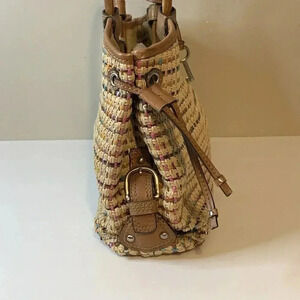 Vtg Fossil Pastel Basket Weave Straw Wood Handle Leather Trim Bag (No Strap)