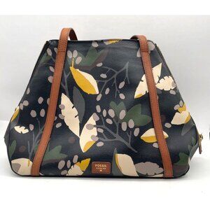 Vintage Fossil Vinyl Leather Floral Tote Shoulder Bag