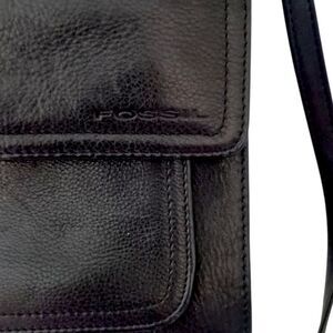 Vtg Fossil Crossbody Pebbled Leather Black Purse Bag Academia Preppy Hippie. Condition is pre-owned and vintage. No rips, tears, holes or discolorations. Pebbled black leather. Strap is not adjustable. Measures ABOUT 8" x 8.5" x 3". Please see all photos for detailed condition.