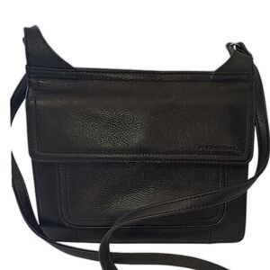 Vtg Fossil Crossbody Pebbled Leather Black Purse Bag Academia Preppy Hippie