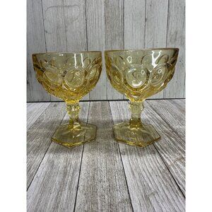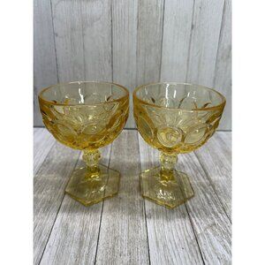 Vtg Fostoria Moonstone Yellow Gold Amber Champagne Goblets 5 1/8" Tall Set of 2