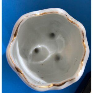 This charming porcelain egg vase tells a story of timeless elegance with its delicate floral rose design and shimmering gold trim. Its petite size and four-legged design give it a whimsical touch, making it a delightful piece for collectors or those who appreciate unique decorative items.