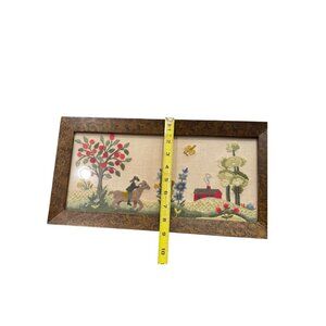 Minor wear on the frame edges; embroidery in excellent condition. Measurements: Width = 17 inches, Height = 9inches.