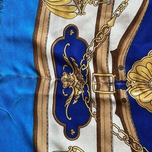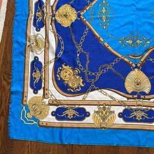 Vintage Franco Laurenti bue, tan, gold & cream “crest” themed extra large scarf or wrap