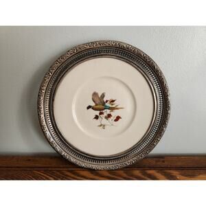 Vtg Frank M Whiting Plate With Sterling Silver Rim & Hand Painted Pheasant 8 in