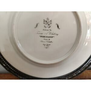 This vintage Frank M Whiting plate features a decorative hand-painted pheasant design with a sterling silver rim. The 8-inch plate is made of porcelain and showcases intricate details, making it a unique and charming collectible for any occasion. Made in the United States, this piece of American culture adds a touch of elegance to any collection with its multicolor design and high-quality craftsmanship. A beautiful addition to any collector's display, this plate captures the essence of a bygone era with its vintage appeal and timeless style