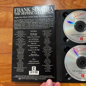 The Frank Sinatra The Reprise Collection 1990 81 Tracks 4 CD Box Set is a collector's edition anthology showcasing the iconic artist's work from the 1960s and 1970s. This comprehensive box set features 81 tracks across 4 CDs, housed in a black cardboard sleeve. With a focus on vocal jazz and swing, this compilation is a must-have for fans of Frank Sinatra and the era of classic music. Made in the United States, this set is a valuable addition to any music collection, offering a nostalgic trip through the music of one of the greatest singers of all time.