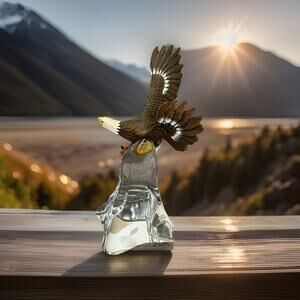 This vintage Franklin Mint Alaskan Frontier Wildlife Sculpture features a small porcelain and ceramic piece of a Bald eagle on glass. The multicolor sculpture, measuring 4 inches in length and 3 inches in height, is part of the Alaskan Frontier Wildlife collection from the 1990s. It appeals to adults who appreciate wild animal-themed decor and is suitable for all occasions. The Franklin Mint brand adds a touch of authenticity to this unique and collectible item.