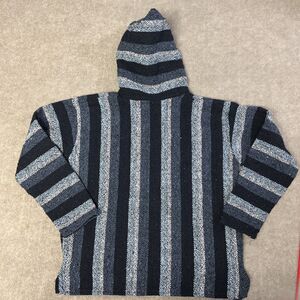 Vtg Franks Textiles Hoodie Gray Blue Black Baja Mexican Poncho Mexico | Size L