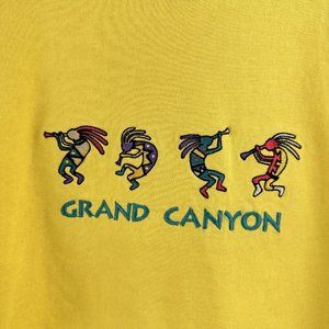 Vtg Fred Harvey Grand Canyon Kokopelli Yellow Cut Off Cropped L Embroidered