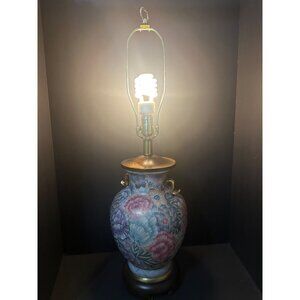 Vtg Frederick Copper Style Floral Table Lamp Urn Ginger Jar Style 28" Tall Works