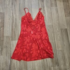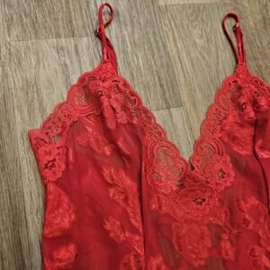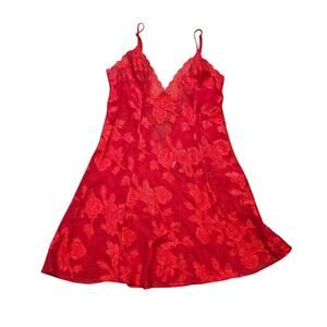 Vtg Fredrick's of Hollywood Red Floral Lace Slip Dress Womens M Lingerie 90s