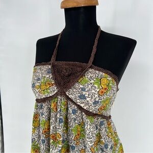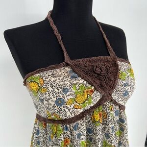 Vtg Free People Boho Cottagecore Gypsy Whimsical Festival Crochet Halter Dress