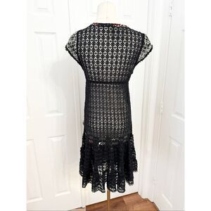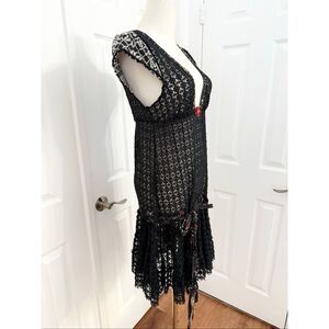 Vtg Free People Womens Black Crochet Lace Cap Sleeve Mini Dress Size 2