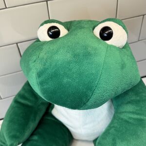 Vtg Frog Stuffed Animal Large 19" Plush Commonwealth Green White Big Eyes Toad