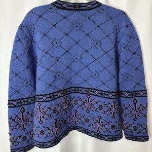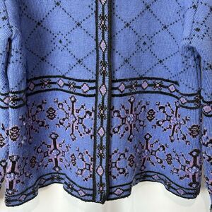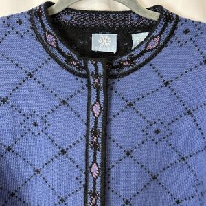 Vtg Frost Womens L Wool Blend Full Zip Nordic Cardigan Sweater Blue Border 90s
