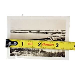 Vintage Frosty Dam with Cabin Behind Original Monochrome Photo Black and White Found Snapshot 2.5 x 3.5 in Landscape, Nature core.