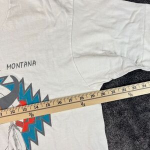 Vtg Fruit Of The Loom Montana Aztec Southwestern T-Shirt Single Stitch Bull L. **Minor yellow spot near bottom of shirt as shown in photos; no other flaws noted. Refer to all photos for condition and sizing.