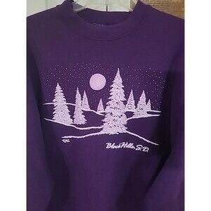 Vtg Fruit of the Loom FOTL Sweatshirt 2XL Purple Embossed 3-D Black Hills South Dakota Made in USA Christmas Holidays Novelty Crewneck Pullover Y2K 90s Hip Hop Streetwear Grannycore