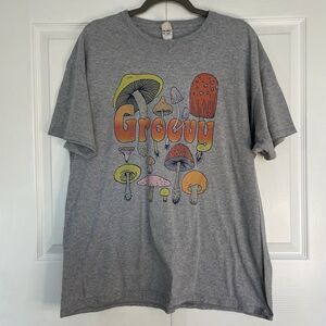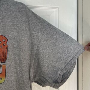 Vintage Fruit of the Loom groovy mushroom crew neck t-shirt. Heather gray. Men's size XL.