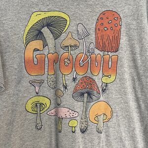 Vtg Fruit of the Loom Groovy Mushroom Graphic T-Shirt Heather Gray Men’s Size XL