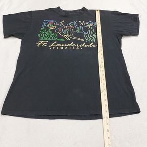 Vtg Ft Lauderdale Black Colorful Fish Single Stitch Graphic T-Shirt Size Large