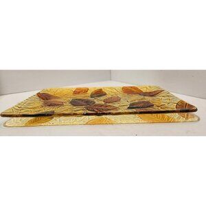 Vtg Fused Glass Rectangular Flat Textured Serving Dish Fall Leaves 9x14 Inches