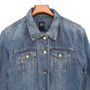 Vtg GAP Jean Trucker Jacket Womens Blue Cotton Denim Button Front Y2K Size L