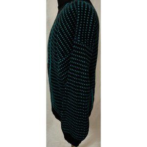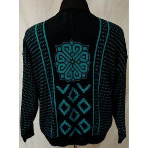 Vtg. G.F.C. Womens M/L Black Aqua Geometric Long Sleeve Made in NY USA Sweater