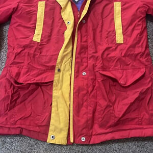 This vintage G.H. Bass & Co. jacket is the perfect addition to any outdoor enthusiast's wardrobe. Made with durable cotton and lined for extra warmth, this red parka is suitable for skiing and other outdoor activities during the 80s and 90s. The jacket features a softshell fabric type and is designed for men in a regular size.