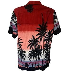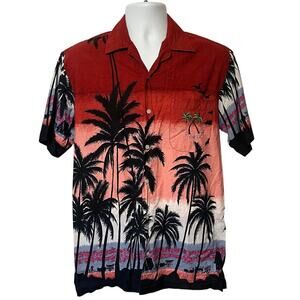 Vtg G.J. Cottage St. Thomas Floral Hawaiian Shirt Tropical Palm Embroidered Sz M