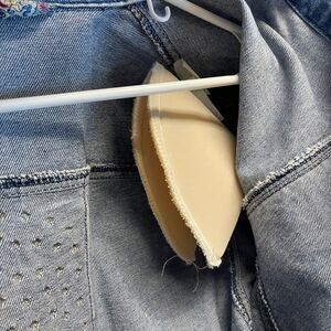 Opal by Hot Property Jacket Women's Medium Blue Denim Gold Studded Padded Cropped Long Sleeve
