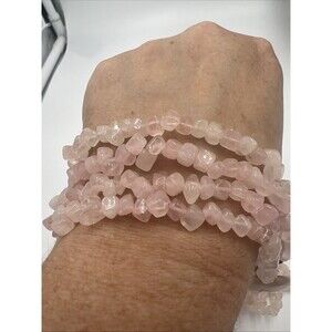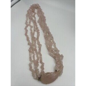 Vtg GOLD TONE MULTI STRAND ROSE QUARTZ GEMSTONE NECKLACE 25" Focal Point Leaf