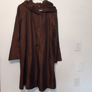 Vtg Gallery Jacket Womens M Brown Button Up Coat Lightweight Hooded