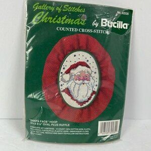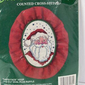 Vtg Gallery of Stitches Santa Face Counted Cross Stitch Kit NEW 32535 oval