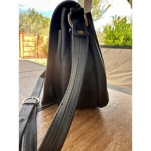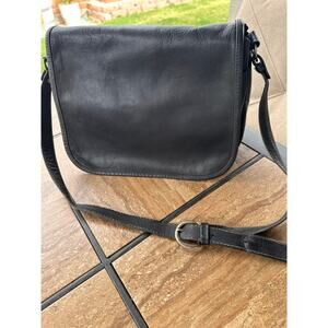 Vtg Ganson Black Leather Crossbody Saddle Flap Purse Adjustable Strap 80s 90s