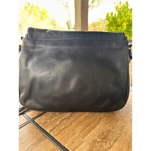 This is a classic, genuine leather crossbody bag from the vintage brand Ganson (often associated with San Francisco designs). With its timeless saddle bag shape, supple black leather, and organized interior, this piece is an excellent example of functional style from the late 1980s or 1990s. Perfect for everyday use or as a vintage collector's piece.