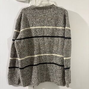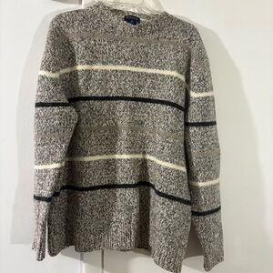 This vintage GANT sweater for men in size XL is made of 100% wool with a classic striped design in gray. Crafted in Italy, the pullover style features a crew neck and long sleeves, suitable for travel, casual wear, work, or business attire. The heavyweight knit fabric makes it ideal for winter, fall, or spring seasons, with a classic and preppy style that draws inspiration from Italian and nautical themes. Perfect for a cozy and timeless look, this sweater is a versatile addition to any wardrobe.
