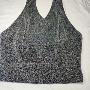 Vintage 90s brand Gantos sparkly silver halter crop top, women's size medium.