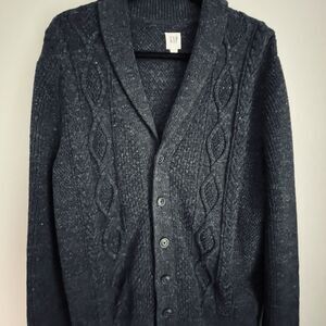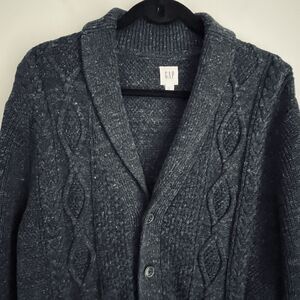 Vtg Gap Cardigan Sweater Men L Navy Blue Fleck Grandpa Chunky Knit Shawl Collar