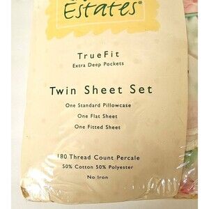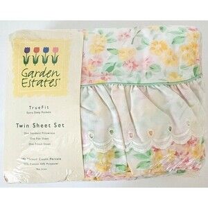 Pink and yellow Romantic Floral / Scalloped Eyelet Lace edge / dated 1997 / made in the USA / 180 thread count / extra deep pockets